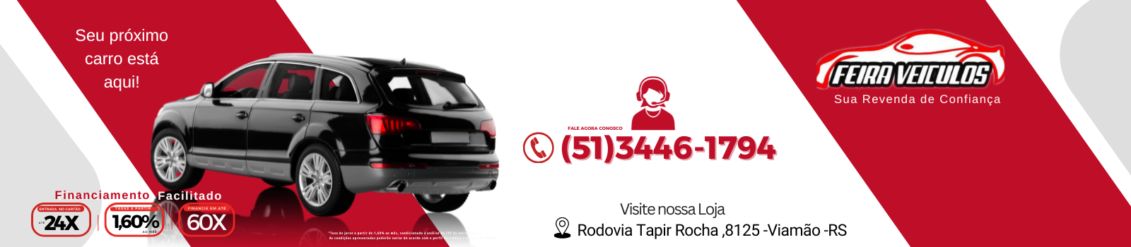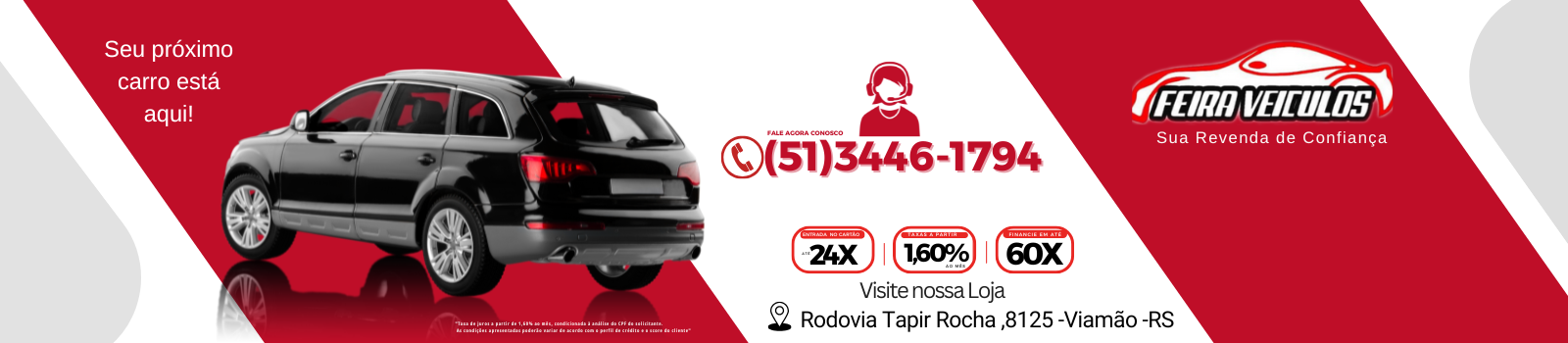 Feira Veículos Viamão atua no mercado de seminovos na região de Viamão oferecendo sempre as melhores ofertas de seminovos para você. Trabalhamos somente com veículos de procedência que passam por um rigoroso controle de qualidade e checagem completa no histórico. Pensou em comprar seminovo em Viamão, pensou Feira Veículos Viamão. Seu próximo carro está aqui!
